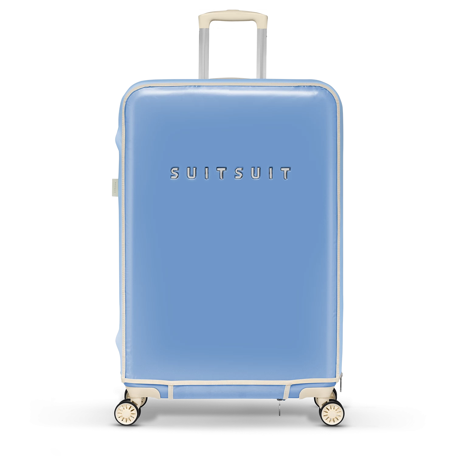 De Fabulous Fifties beschermhoes is dé perfecte oplossing voor het behouden van een schone en krasvrije koffer. Met de extra beschermlaag houd je je SUITSUIT koffer zo lang mogelijk mooi. De voor- en achterzijde van de hoes zijn mat transparant PVC, zodat de kleur van je Fabulous Fifties koffer goed zichtbaar blijft. De iconic kleur Alaska Blue vind je terug aan de boven- en zijkanten van de beschermhoes.